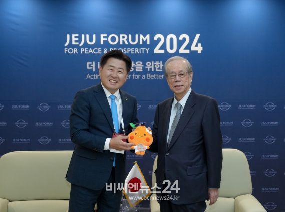 (비씨엔뉴스24) 오영훈 제주특별자치도지사와 후쿠다 야스오(福田康夫) 일본 전 총리는 30일 오후 제19회 평화와 번영을 위한 제주포럼에서 만나 제주와 일본 지방정부와의 교류 활성화 방안에 대해 논의했다.