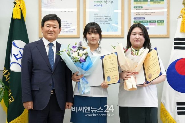 (비씨엔뉴스24) 제주특별자치도교육청은 5월 31일 분실한 카드의 주인을 찾아준 선행 학생 2명 (제주여고 정영채, 제주중앙여고 조서원)에게 표창장을 수여했다.