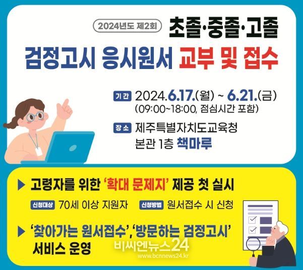 (비씨엔뉴스24) 제주특별자치도교육청은 2024년 6월 7일에 2024년도 제2회 초졸·중졸·고졸 검정고시 시행계획을 공고했다.
