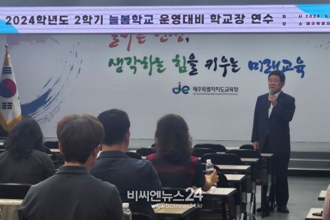 (비씨엔뉴스24) 제주특별자치도교육청은 2학기 늘봄학교 전면 시행에 대비해 25일 도교육청 대회의실에서 2학기 늘봄학교 운영 예정 학교장을 대상으로 연수를 실시했다.