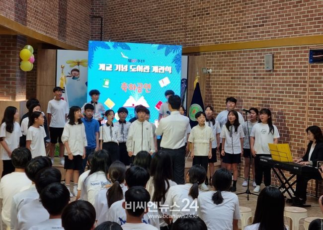 (비씨엔뉴스24) 제주도교육청 이도초등학교는 6월 28일, 학생과 학부모 및 내빈 180여 명이 참석한 가운데 제12주년 개교 기념 ‘영글이네 책뜰’ 도서관 개관식을 가졌다.