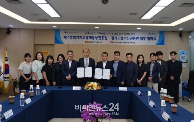 (비씨엔뉴스24) 제주특별자치도경제통상진흥원은 경기도농수산진흥원과 상호 운영하는 지자체몰(이제주몰-제주, 마켓경기-경기)을 통한 연계 판매로 도내 생산농가의 판매활성화를 추진하기 위한 업무협약(MOU)을 체결했다고 2일 밝혔다.