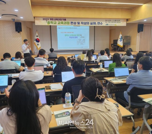 (비씨엔뉴스24) 제주특별자치도교육청은 2022 개정 교육과정 시행에 앞서 안정적이고 효율적인 중학교 교육과정 편성과 운영지원을 위해 지난 15일 ▲2022 개정 교육과정 중학교 교육과정 편성 및 작성의 실제(서귀중앙여자중학교 교감 강상호) 연수를 제주도 내 중학교 교육과정 담당자를 대상으로 실시했다.