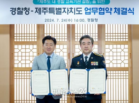 (비씨엔뉴스24) 제주특별자치도와 경찰청은 24일 오후 4시 경찰청 본부 대회의실에서 제주도 내 경찰 교육기관 설립 추진을 위한 상호 협력 업무협약을 체결했다.