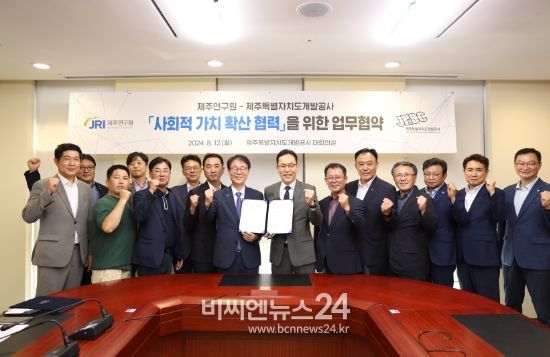 (비씨엔뉴스24) 제주개발공사와 제주연구원은 ‘사회적 가치 확산 협력’을 위한 업무협약을 지난 12일 체결했다고 밝혔다.