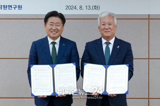 이날 오후 대전 유성구 소재 한국지질자원연구원에서 열린 협약식에서 양 기관은 용암해수 등 지하수 자원의 고도화와 산업적 활용 연구 등 7개 분야에 대한 협력을 약속했다.