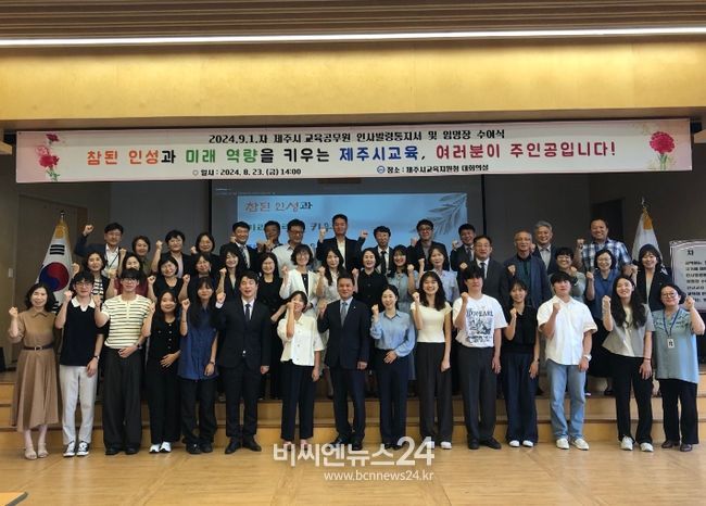 (비씨엔뉴스24) 제주시교육지원청은 23일에 제주시교육지원청 대회의실에서 2024년 9월 1일자 교육전문직원 5명, 교감 승·전직자 20명, 신규교사 16명에 대한 인사발령통지서 및 임명장 수여식을 개최했다.