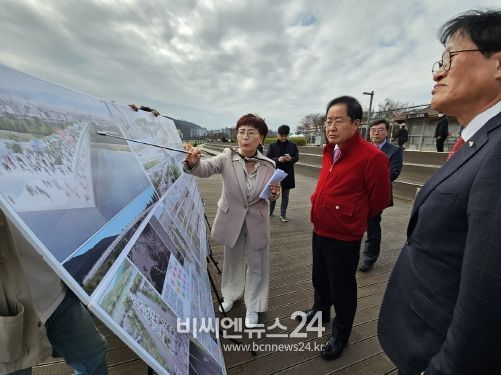 (비씨엔뉴스24) 홍준표 대구광역시장은 4월 4일 오후 수성못을 찾아 수성못 수상공연장 건립 예정지를 둘러 봤다.