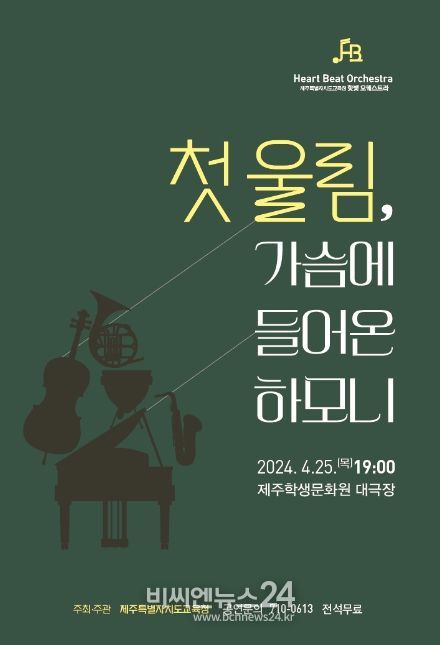 (비씨엔뉴스24) 제주특별자치도교육청은 4월 25일 오후 7시 제주학생문화원 대극장에서 ‘핫빛(HeartBeat) 오케스트라’의 창단연주회‘ 첫 울림, 가슴에 들어온 하모니’를 개최한다.