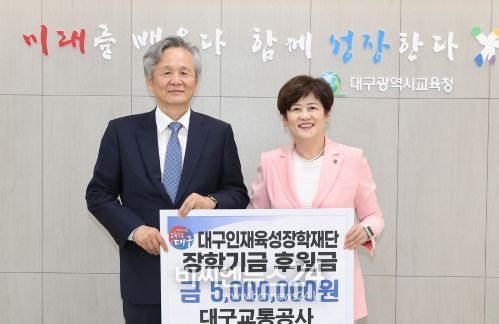 (비씨엔뉴스24) 대구시교육청은 지난 4월 25일, 대구교통공사에서 대구인재육성장학재단에 장학금 5백만 원을 기탁했다고 밝혔다.