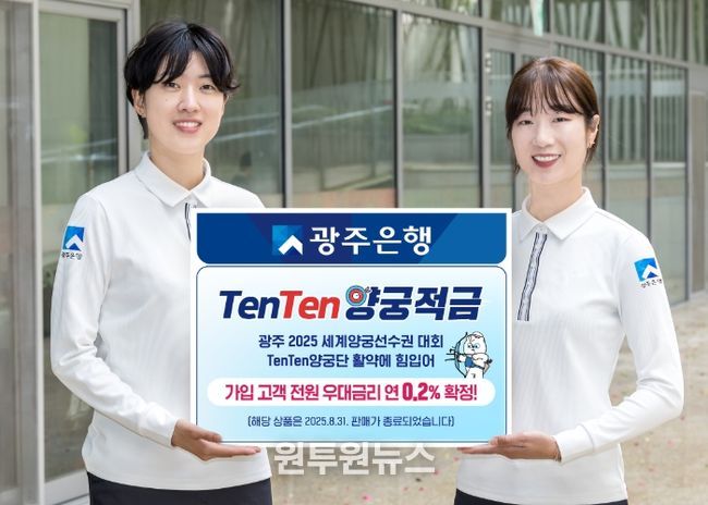 (원투원뉴스) 광주은행은 지난 8월 31일에 판매 종료된 ‘TenTen양궁적금’의 가입 고객 전원에게 우대금리 연 0.20%p 제공이 확정됐다고 밝혔다.
