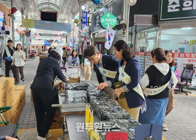 (원투원뉴스) 진천교육지원청은 추석 명절을 맞이하여 9월 25일(목) 진천중앙시장에서 전통시장 장보기 행사와 함께 청렴-친절 캠페인을 펼쳤다.