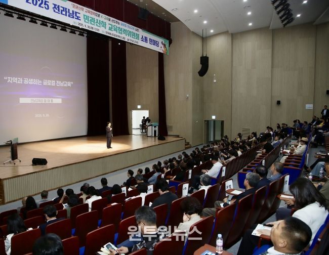 (원투원뉴스) 전라남도교육청은 9월 30일 나주 한국에너지공과대학교 강당에서 본청과 22개 교육지원청 민관산학 교육협력위원회 위원 500여 명이 참석한 가운데 ‘2025 민관산학 교육협력위원회 소통한마당’을 개최했다.