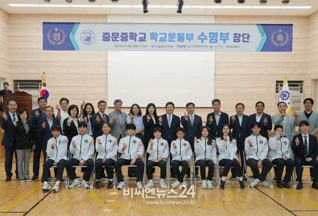 (비씨엔뉴스24) 제주도교육청 중문중학교는 7일 다목적강당에서 수영부 창단식을 가졌다.