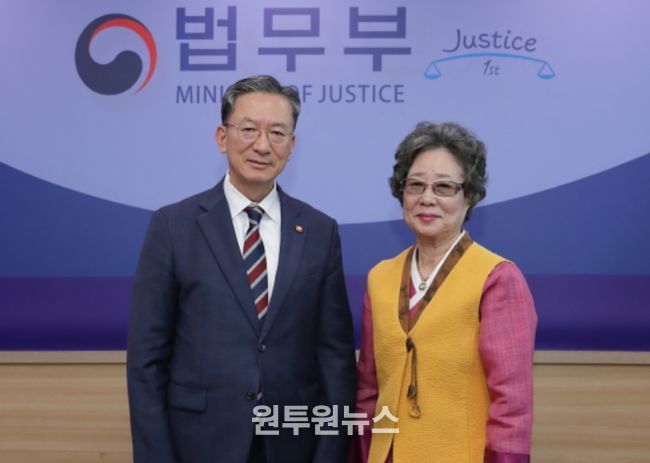 (원투원뉴스) 정성호 법무부장관은 최근 재심을 통해 무죄가 확정된 최말자 씨(여, 46년생)를 11월 10일 면담하여 61년 만에 이루어진 명예회복을 축하하며 국가 공권력으로 인하여 오랜 시간 고통을 받은 것에 사과와 위로의 뜻을 전했다.