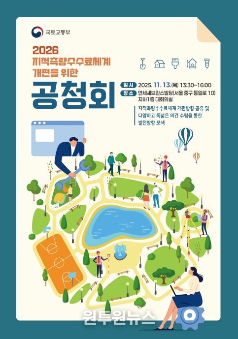 (원투원뉴스) 국토교통부는 국민이 쉽게 이해하고 신뢰할 수 있는 지적측량 수수료 체계를 마련하고자, 11월 13일 오후 서울에서 지적측량수수료 체계 개선 공청회를 개최한다.