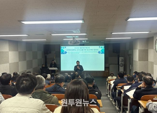 (원투원뉴스) 인천광역시교육청은 12일 학교 건설공사 참여자의 자발적 공정관리를 유도하고 학교시설공사 품질을 확보하기 위해 신설학교 공사관계자를 대상으로 합동협의회를 개최했다.