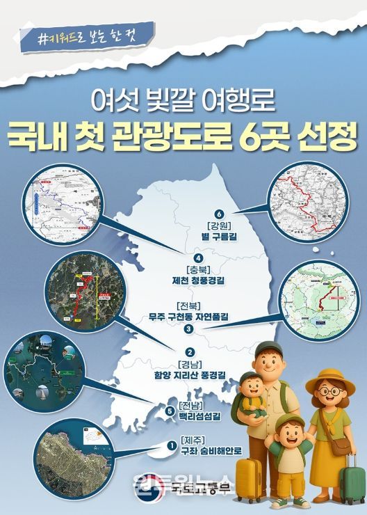 (원투원뉴스) ■ 여섯 빛깔 여행로 '국내 첫 관광도로 6곳 선정'