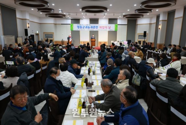 (원투원뉴스) 충북 영동군은 18일 저녁 영동아모르아트웨딩컨벤션에서 귀농귀촌인들의 화합과 소통을 위한 ‘2025년 영동군 귀농귀촌인 화합행사’를 개최했다.