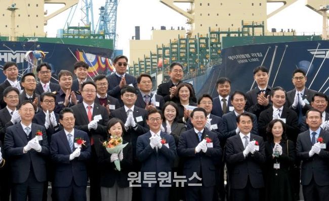 (원투원뉴스) 전라남도는 20일 HD현대삼호에서 HMM사의 메탄올 추진 컨테이너선 ‘클로버(CLOVER)호’ 명명식이 열렸다고 밝혔다.