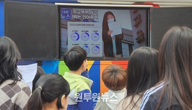 (원투원뉴스) 인천광역시교육청은 학생들의 언어폭력 예방 인식을 높이고 학교폭력 예방 역량을 강화하기 위해 9월 25일부터 11월 21일까지 관내 초·중 12교로 찾아가는 미디어나눔버스 ‘언어폭력 예방 TV뉴스 체험’ 프로그램을 운영했다고 밝혔다.