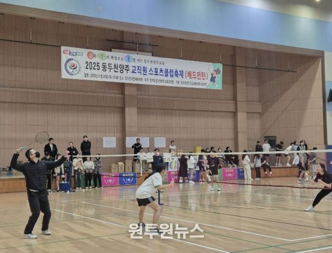 (원투원뉴스) 동두천양주교육지원청는 11월 20일, 동두천국민체육센터에서 관내 초·중·고 34개 학교 교직원 218명이 참여한 ‘2025년 동두천양주 교직원 스포츠클럽축제 배드민턴 경기’를 개최했다. 이번 행사는 교직원의 건강 증진과 더불어 학교 간 소통과 협력을 강화하기 위해 마련됐으며, 다양한 클럽이 참여해 활기찬 경쟁과 화합의 시간을 만들어냈다.