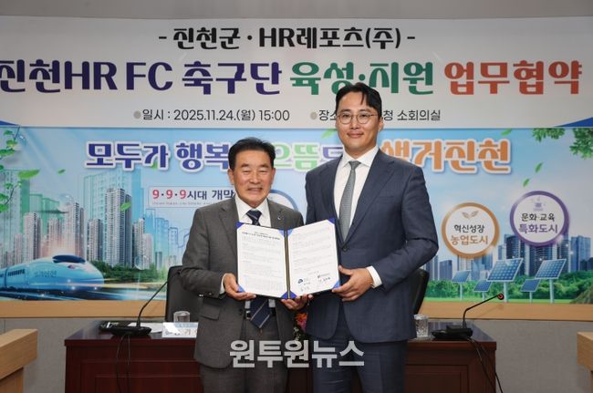 이번 협약은 2026년 대한축구협회 K4 리그 참가를 앞두고, 진천 HR FC의 안정적인 운영 기반을 마련하고, 지역 스포츠 발전을 위한 협력 체계를 구축하기 위해 추진됐다.