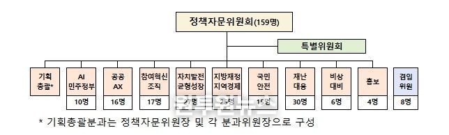 향후 1년(’25.11.24.~’26.11.23.)간 활동하게 되는 제8기 정책자문위원회는 학계·연구원·기업·시민사회 등 다양한 분야의 전문가 159명이 위촉됐으며, 행정안전부 조직개편(’25.11.25. 시행 예정) 내용과 연계해 10개 분과로 구성됐다.