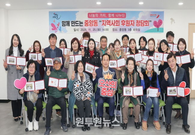 (원투원뉴스) 오산시 중앙동은 지난 25일 중앙동행정복지센터에서 ‘나눔의 가치, 함께 만드는 중앙동 복지 지역사회 후원자 정담회’를 성황리에 개최했다고 밝혔다.