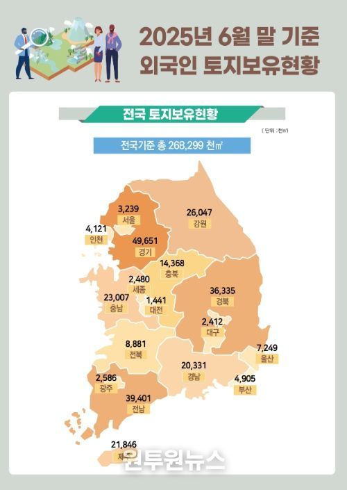 (원투원뉴스) 국토교통부는 2025년 6월말 기준 외국인 토지·주택 보유통계를 공표했다.
