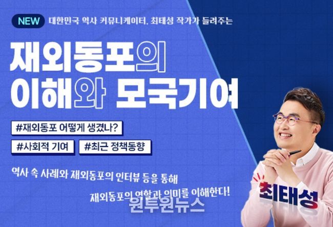 특히, 이 콘텐츠의 강연자로 재외동포청 홍보대사이자 한국사 스타강사 최태성 역사 커뮤니케이터가 참여하고 있다.