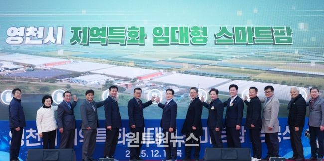 (원투원뉴스) 영천시는 11일 200여 명이 참석한 가운데 미래 농업을 선도할 청년농업인을 육성하기 위한 ‘지역특화 임대형 스마트팜’ 준공식을 개최하고, 스마트농업의 비전을 제시했다.