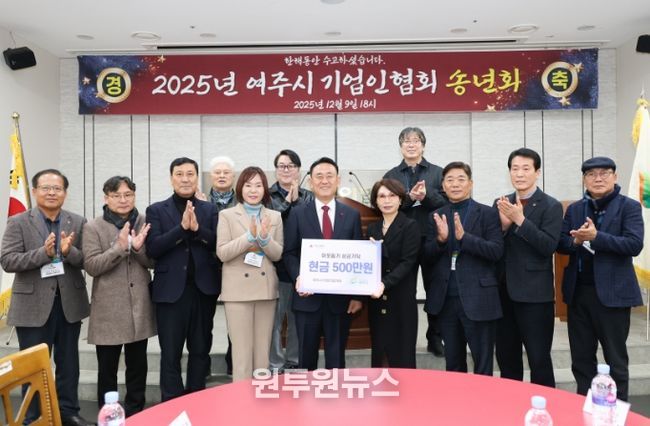 (원투원뉴스) 여주시 기업인협의회는 지난 9일 여주축협하나로마트 대회의실에서 30여 명의 회원과 이충우 여주시장, 이용철 경제환경국장, 김영수 일자리경제과장, 경기신용보증재단 곽우혁 여주지점장, 경기도경제과학진흥원 안 경우 본부장 등이 참석한 가운데 2025년 여주시 기업인협의회 12월 정기모임 및 송년회를 개최했다.