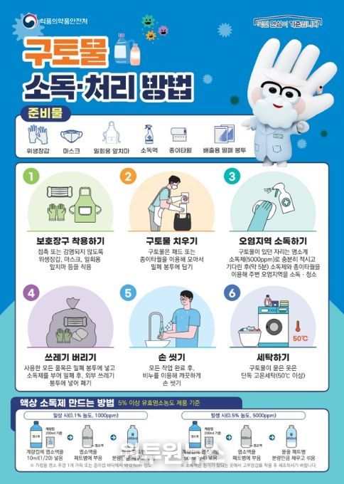참고로 올해 식약처는 구토에 의한 식중독 확산을 방지하기 위해 어린이집 등 전국 영유아 시설에 ‘구토물 소독 처리키트(위생장갑, 마스크, 소독액, 타월 등)’ 36,000개를 배포했다.