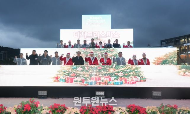 나우다 기념행사와 함께 개막한 ‘비치(beach) 크리스마스 & 메모리 2025’는 오는 25일까지 함덕해수욕장 일대에서 진행된다. 높이 5.5m 대형 트리와 중형 트리(2~3m), 포토존, 야자수·돌하루방 조명 등이 해변 전체를 크리스마스 분위기로 채우고 기존 플리마켓도 크리스마스 콘셉트로 운영된다.