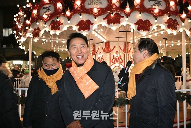 오 시장은 시민 대표들과 함께 광화문 미디어파사드와 옥외전광판에 점등하며 겨울밤 서울 도심을 화려하게 빛으로 수놓았다. 이어서 광화문광장의 ‘광화문 마켓’과 청계천의 ‘서울빛초롱축제’를 차례로 둘러봤다.