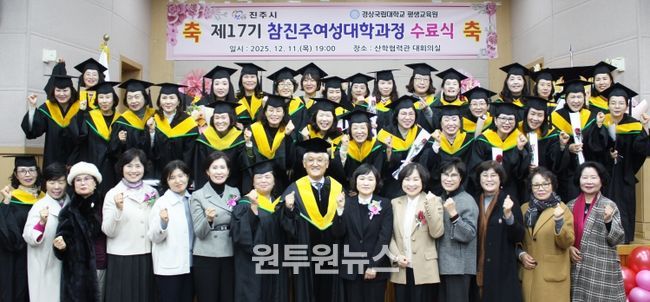 (원투원뉴스) 경상국립대학교 평생교육원(원장 김철호 제약공학과 교수)은 12월 11일 칠암캠퍼스 산학협력관 대회의실에서 ‘2025년 제17기 참진주여성대학 수료식’을 개최했다.