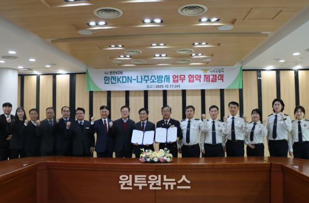 (원투원뉴스) 나주소방서는 17일 한전KDN 본사에서 지역 공공안전 강화를 위해 업무협약(MOU)을 체결했다.