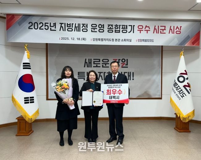 (원투원뉴스) 태백시는 강원특별자치도가 실시한 ‘2025년 지방세정 운영 종합평가’에서 2년 연속 최우수 시·군으로 선정됐다고 밝혔다.
