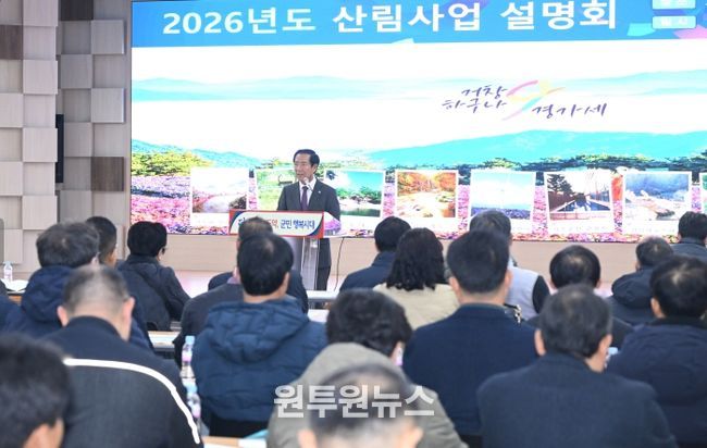 (원투원뉴스) 거창군은 지난 18일 산주와 임업인, 석산 관계자 등을 대상으로 산림 지원사업 전반을 안내하기 위한 ‘2026년도 산림사업 설명회’를 개최했다.