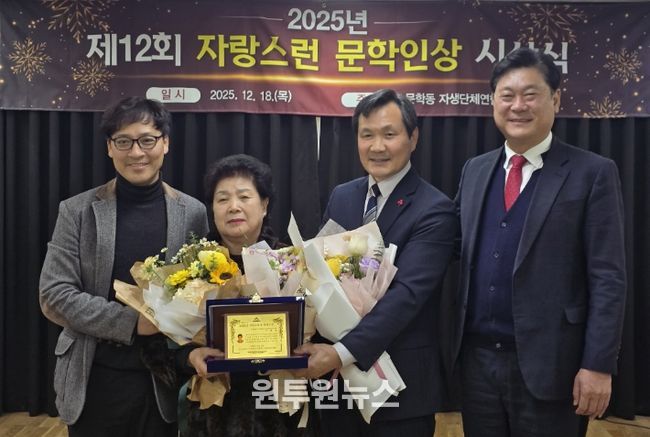 (원투원뉴스) 미추홀구 문학동은 동 자원봉사 활동가 이태숙 씨를 ‘제12회 자랑스러운 문학인상’ 수상자로 선정하고, 지난 18일 시상식을 개최했다.