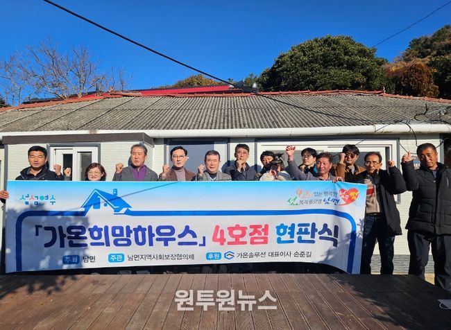 (원투원뉴스) 여수시 남면은 지난 18일 남면 직포마을에서 취약계층의 주거환경을 개선한 ‘가온희망하우스 4호점’ 현판식을 개최했다고 밝혔다.