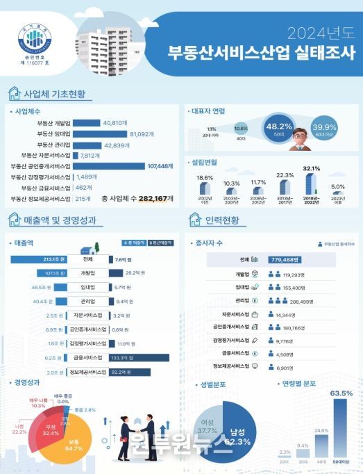 (원투원뉴스) 국토교통부는 2024년 말 기준 부동산서비스산업 실태조사 결과를 공표했다.