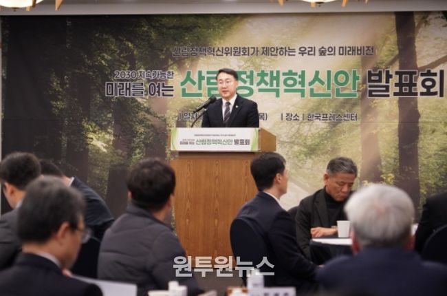 (원투원뉴스) 산림청 산림정책 혁신위원회는 급변하는 기후환경과 산촌·임업의 위기 속에서 국민이 체감하는 새로운 산림정책 방향을 제시하기 위해 ‘2030 지속가능한 미래를 여는 산림정책 혁신안’을 18일 발표했다.