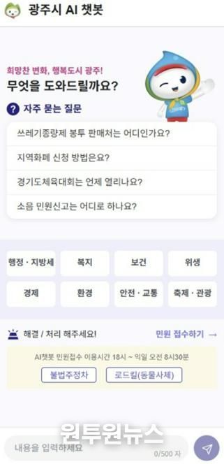 (원투원뉴스) 광주시는 생성형 인공지능(AI) 기술을 활용한 ‘광주시 AI 행정서비스 구축’ 사업을 완료하고 AI 민원 채팅 로봇과 콜봇을 22일부터 시범 운영한다고 19일 밝혔다.