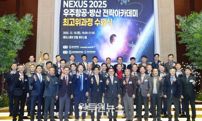 (원투원뉴스) 경상국립대학교는 12월 18일 진주 제이스퀘어 호텔 제우스홀에서 ‘NEXUS 2025 우주항공·방산 전략 아카데미 최고위과정(이하 NEXUS 아카데미)’ 제1기 수료식을 개최했다.