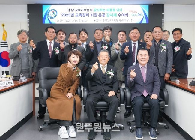 (원투원뉴스) 충남교육청은 19일, 도교육청 회의실에서 교육경비 지원으로 충남 교육발전에 이바지한 개인과 기업·민간단체에 감사패를 전달했다.
