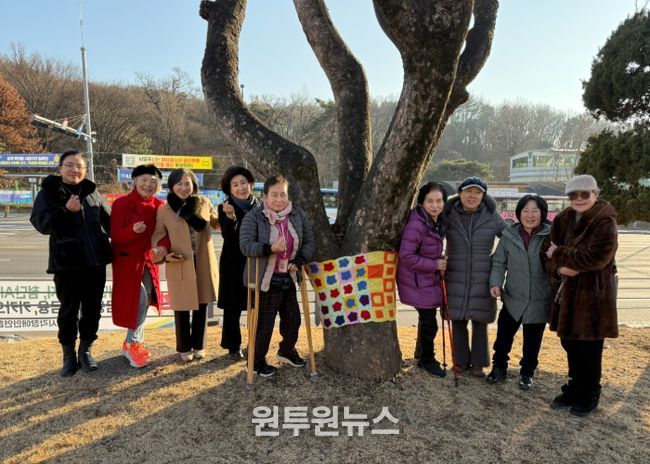 행사에는 권경순 지회장, 김묘실 후원회장, 김나영 운영위원장, 여성장애인 등 8명이 참여했으며 시청 1청사 정문에 위치한 소나무 5그루에 마음을 담은 손뜨개 작품을 설치했다.