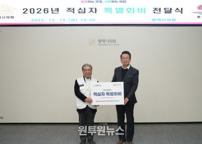 (원투원뉴스) 평택시의회는 19일, 평택시의회 3층 간담회장에서 대한적십자사 경기도지사에 적십자 특별회비 전달식을 가지고 이웃사랑 실천에 동참했다.