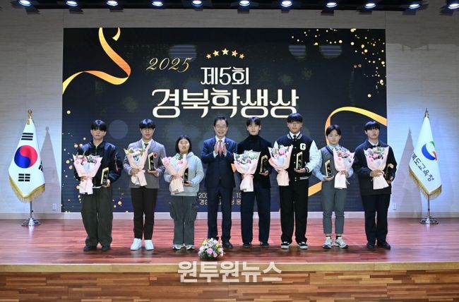 (원투원뉴스) 경북교육청은 19일 본청 웅비관에서 ‘제5회 경북학생상’ 시상식을 개최하고, 2025년 한 해 동안 각자의 분야에서 탁월한 성취와 바른 삶의 태도로 경북교육의 가치를 실천한 학생 7명을 시상했다.